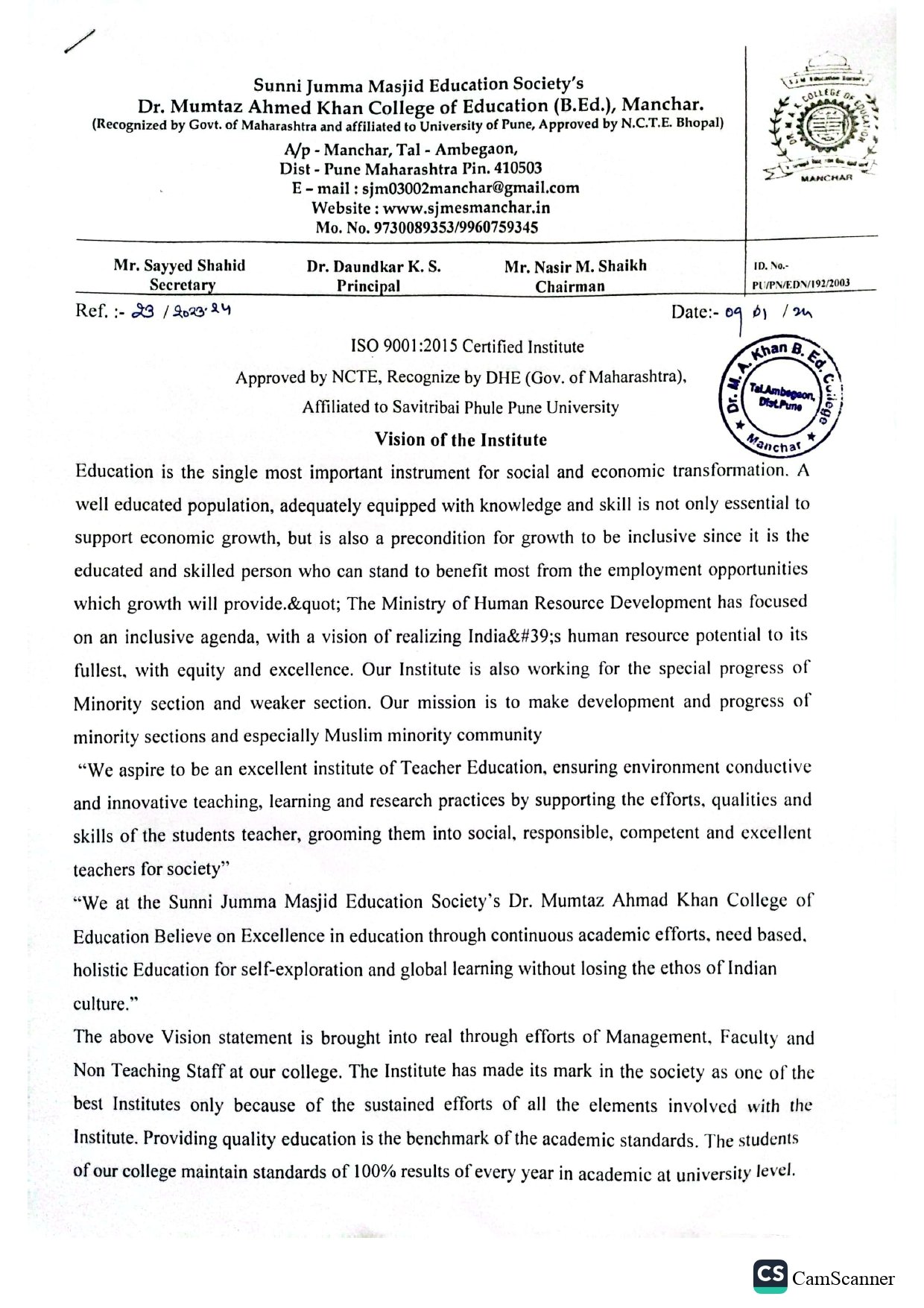 Vision, Mission & Aims of the Institute